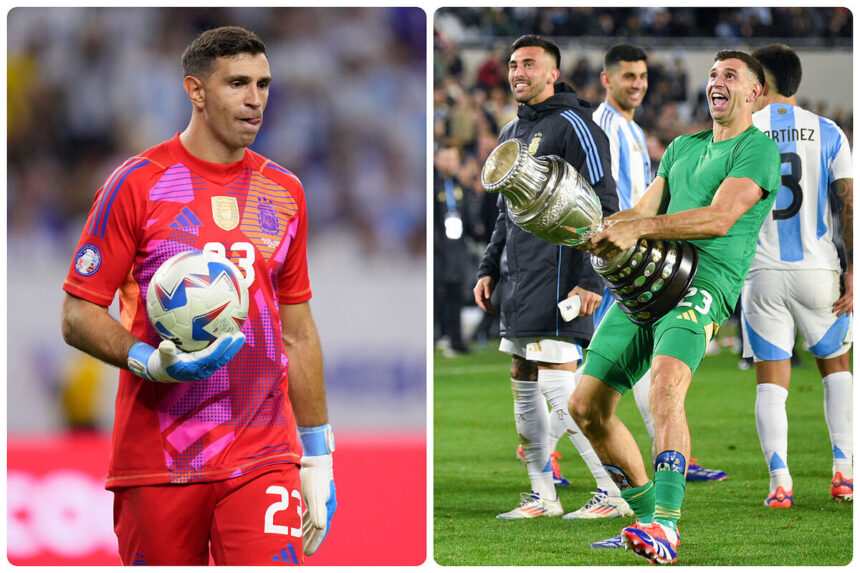 En el duelo contra Chile del 5 de septiembre en el Estadio de River Plate, el “Dibu” tomó la réplica del trofeo de la Copa América y se la colocó en la zona de los genitales como en el Mundial de Qatar 2022.