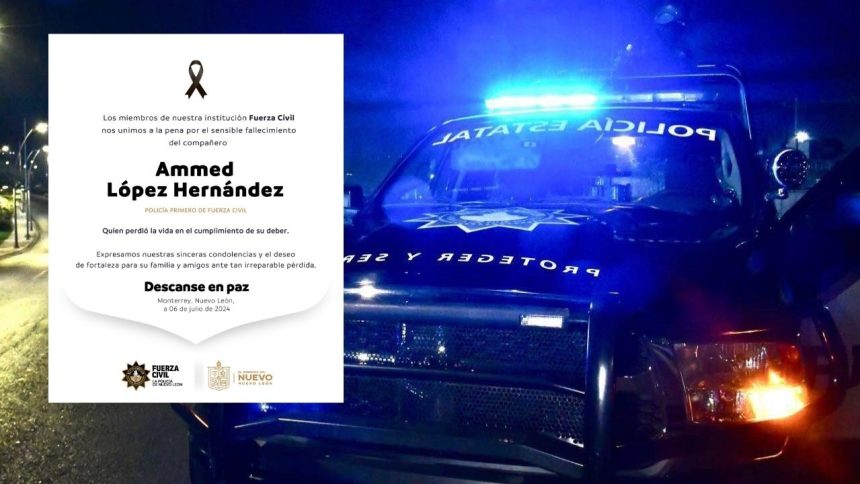 “Los miembros de nuestra institución Fuerza Civil nos unimos a la pena por el sensible fallecimiento del compañero Ammed López Hernández, Policía Primero de Fuerza Civil, quien perdió la vida en cumplimiento de su deber”, indicó la dependencia de seguridad a través de redes sociales.