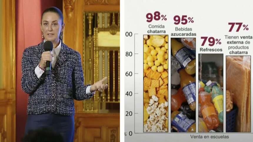 En la también conocida como ‘La Mañanera del Pueblo‘ la presidenta y el titular de la Secretaría de Educación Pública (SEP) informó que la iniciativa busca llevar acciones para prohibir alimentos poco nutritivos o considerados comida chatarra.